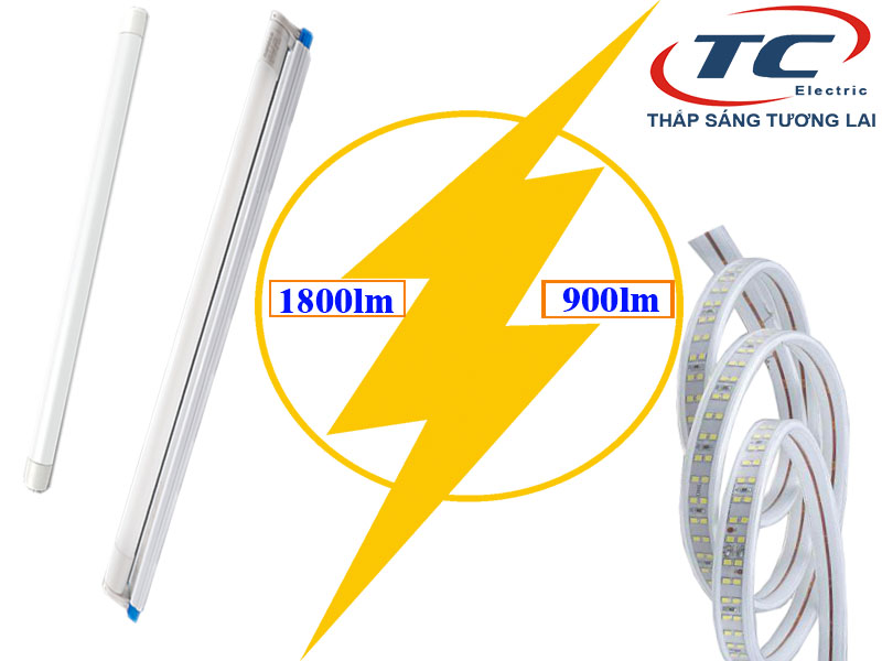 Về độ sáng thì đèn tuýp LED sẽ nhỉnh hơn gần gấp đôi so với đèn LED dây. Quang thông của đèn tuýp LED lên đến 1800 lumen trong khi đó đèn LED dây chỉ đạt có 900 lumen. Vì vậy về độ sáng thì đèn tuýp LED chắc chắn sẽ tốt gấp đôi so với đèn LED dây.